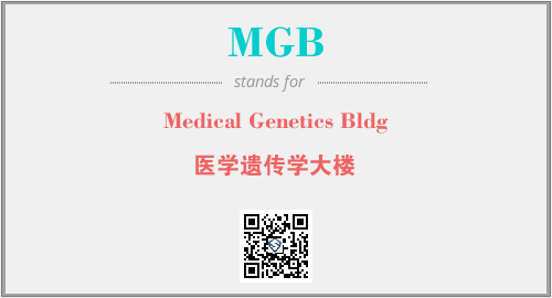 英文缩略词“MGB”经常作为“Medical Genetics Bldg”的英文缩写来使用,中文表示:“医学遗传学大楼”。本文将详细介绍英文缩写词MGB所代表英文单词,其对应的中文拼音、详细解释以及在英语中的流行度。此外,还有关于缩略词MGB的分类、应用领域及相关应用示例等。