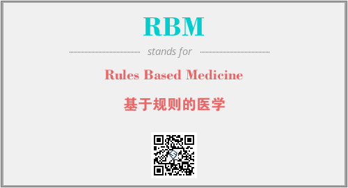 英文缩略词“RBM”经常作为“Rules Based Medicine”的英文缩写来使用,中文表示:“基于规则的医学”。本文将详细介绍英文缩写词RBM所代表英文单词,其对应的中文拼音、详细解释以及在英语中的流行度。此外,还有关于缩略词RBM的分类、应用领域及相关应用示例等。