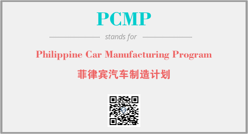 英文缩略词“PCMP”经常作为“Philippine Car Manufacturing Program”的英文缩写来使用,中文表示:“菲律宾汽车制造计划”。本文将详细介绍英文缩写词PCMP所代表英文单词,其对应的中文拼音、详细解释以及在英语中的流行度。此外,还有关于缩略词PCMP的分类、应用领域及相关应用示例等。