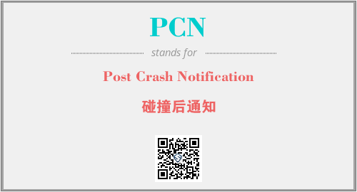 英文缩略词“PCN”经常作为“Post Crash Notification”的英文缩写来使用,中文表示:“碰撞后通知”。本文将详细介绍英文缩写词PCN所代表英文单词,其对应的中文拼音、详细解释以及在英语中的流行度。此外,还有关于缩略词PCN的分类、应用领域及相关应用示例等。