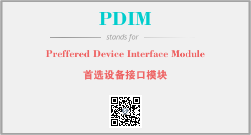 上述内容是“Preffered Device Interface Module”作为“PDIM”的缩写,解释为“首选设备接口模块”时的信息,以及英文缩略词PDIM所代表的英文单词,其对应的中文拼音、详细解释以及在英文中的流行度和相关分类、应用领域及应用示例等。