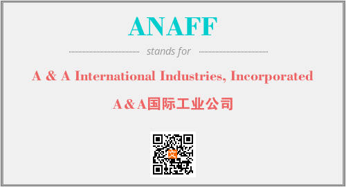 英文缩略词“ANAFF”经常作为“A & A International Industries, Incorporated”的英文缩写来使用,中文表示:“A&A国际工业公司”。本文将详细介绍英文缩写词ANAFF所代表英文单词,其对应的中文拼音、详细解释以及在英语中的流行度。此外,还有关于缩略词ANAFF的分类、应用领域及相关应用示例等。