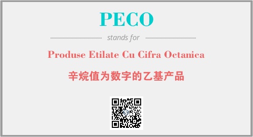 上述内容是“Produse Etilate Cu Cifra Octanica”作为“PECO”的缩写,解释为“辛烷值为数字的乙基产品”时的信息,以及英文缩略词PECO所代表的英文单词,其对应的中文拼音、详细解释以及在英文中的流行度和相关分类、应用领域及应用示例等。