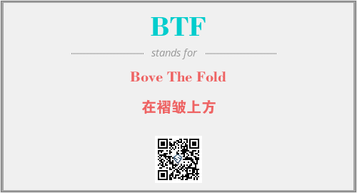上述内容是“Bove The Fold”作为“BTF”的缩写,解释为“在褶皱上方”时的信息,以及英文缩略词BTF所代表的英文单词,其对应的中文拼音、详细解释以及在英文中的流行度和相关分类、应用领域及应用示例等。