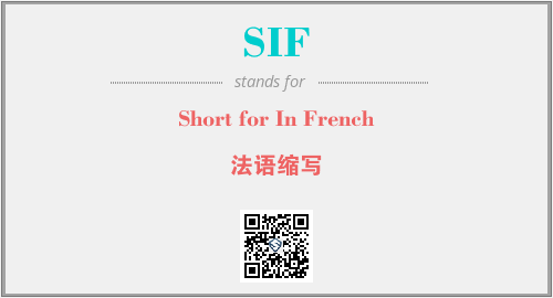 英文缩略词“SIF”经常作为“Short for In French”的英文缩写来使用,中文表示:“法语缩写”。本文将详细介绍英文缩写词SIF所代表英文单词,其对应的中文拼音、详细解释以及在英语中的流行度。此外,还有关于缩略词SIF的分类、应用领域及相关应用示例等。