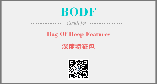 上述内容是“Bag Of Deep Features”作为“BODF”的缩写,解释为“深度特征包”时的信息,以及英文缩略词BODF所代表的英文单词,其对应的中文拼音、详细解释以及在英文中的流行度和相关分类、应用领域及应用示例等。