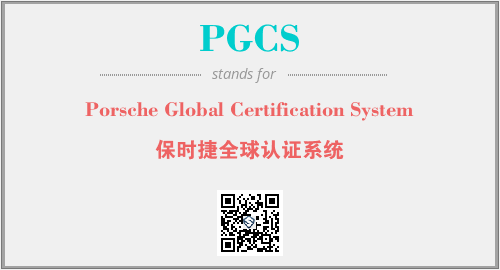 上述内容是“Porsche Global Certification System”作为“PGCS”的缩写,解释为“保时捷全球认证系统”时的信息,以及英文缩略词PGCS所代表的英文单词,其对应的中文拼音、详细解释以及在英文中的流行度和相关分类、应用领域及应用示例等。