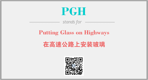 英文缩略词“PGH”经常作为“Putting Glass on Highways”的英文缩写来使用,中文表示:“在高速公路上安装玻璃”。本文将详细介绍英文缩写词PGH所代表英文单词,其对应的中文拼音、详细解释以及在英语中的流行度。此外,还有关于缩略词PGH的分类、应用领域及相关应用示例等。