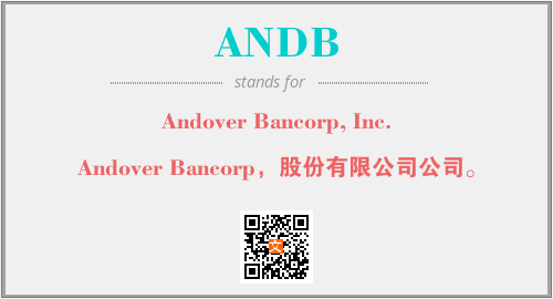 上述内容是“Andover Bancorp, Inc.”作为“ANDB”的缩写,解释为“Andover Bancorp,股份有限公司公司。”时的信息,以及英文缩略词ANDB所代表的英文单词,其对应的中文拼音、详细解释以及在英文中的流行度和相关分类、应用领域及应用示例等。