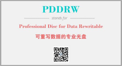 英文缩略词“PDDRW”经常作为“Professional Disc for Data Rewritable”的英文缩写来使用,中文表示:“可重写数据的专业光盘”。本文将详细介绍英文缩写词PDDRW所代表英文单词,其对应的中文拼音、详细解释以及在英语中的流行度。此外,还有关于缩略词PDDRW的分类、应用领域及相关应用示例等。