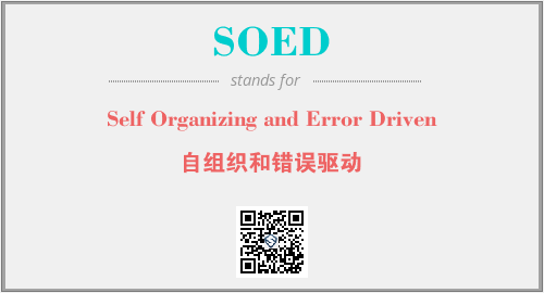 上述内容是“Self Organizing and Error Driven”作为“SOED”的缩写,解释为“自组织和错误驱动”时的信息,以及英文缩略词SOED所代表的英文单词,其对应的中文拼音、详细解释以及在英文中的流行度和相关分类、应用领域及应用示例等。
