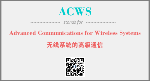 上述内容是“Advanced Communications for Wireless Systems”作为“ACWS”的缩写,解释为“无线系统的高级通信”时的信息,以及英文缩略词ACWS所代表的英文单词,其对应的中文拼音、详细解释以及在英文中的流行度和相关分类、应用领域及应用示例等。