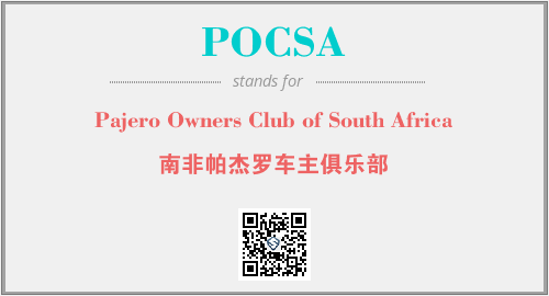 上述内容是“Pajero Owners Club of South Africa”作为“POCSA”的缩写,解释为“南非帕杰罗车主俱乐部”时的信息,以及英文缩略词POCSA所代表的英文单词,其对应的中文拼音、详细解释以及在英文中的流行度和相关分类、应用领域及应用示例等。