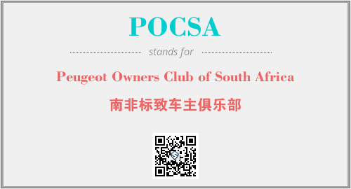 上述内容是“Peugeot Owners Club of South Africa”作为“POCSA”的缩写,解释为“南非标致车主俱乐部”时的信息,以及英文缩略词POCSA所代表的英文单词,其对应的中文拼音、详细解释以及在英文中的流行度和相关分类、应用领域及应用示例等。
