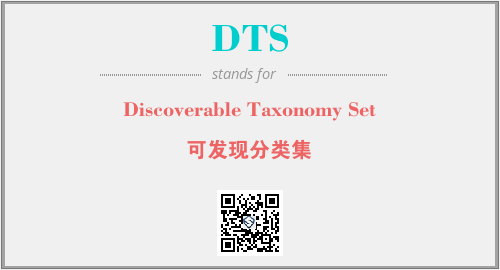 上述内容是“Discoverable Taxonomy Set”作为“DTS”的缩写,解释为“可发现分类集”时的信息,以及英文缩略词DTS所代表的英文单词,其对应的中文拼音、详细解释以及在英文中的流行度和相关分类、应用领域及应用示例等。