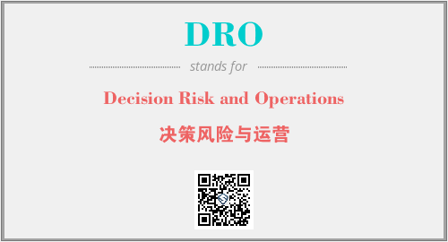 上述内容是“Decision Risk and Operations”作为“DRO”的缩写,解释为“决策风险与运营”时的信息,以及英文缩略词DRO所代表的英文单词,其对应的中文拼音、详细解释以及在英文中的流行度和相关分类、应用领域及应用示例等。