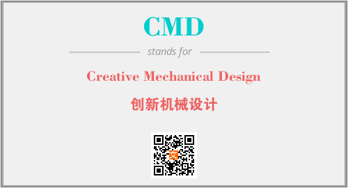 上述内容是“Creative Mechanical Design”作为“CMD”的缩写,解释为“创新机械设计”时的信息,以及英文缩略词CMD所代表的英文单词,其对应的中文拼音、详细解释以及在英文中的流行度和相关分类、应用领域及应用示例等。