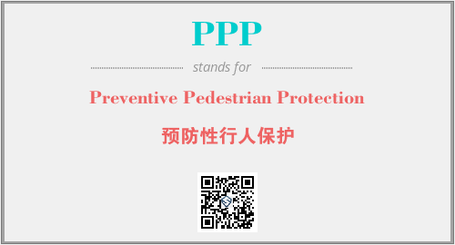 上述内容是“Preventive Pedestrian Protection”作为“PPP”的缩写,解释为“预防性行人保护”时的信息,以及英文缩略词PPP所代表的英文单词,其对应的中文拼音、详细解释以及在英文中的流行度和相关分类、应用领域及应用示例等。
