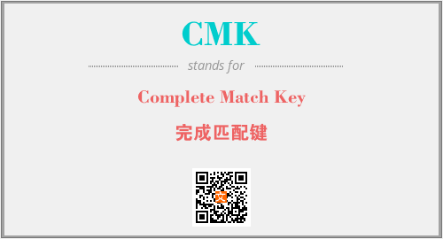 英文缩略词“CMK”经常作为“Complete Match Key”的英文缩写来使用,中文表示:“完成匹配键”。本文将详细介绍英文缩写词CMK所代表英文单词,其对应的中文拼音、详细解释以及在英语中的流行度。此外,还有关于缩略词CMK的分类、应用领域及相关应用示例等。