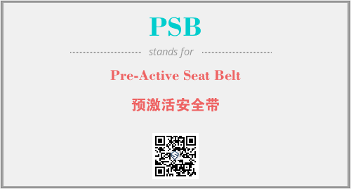 英文缩略词“PSB”经常作为“Pre-Active Seat Belt”的英文缩写来使用,中文表示:“预激活安全带”。本文将详细介绍英文缩写词PSB所代表英文单词,其对应的中文拼音、详细解释以及在英语中的流行度。此外,还有关于缩略词PSB的分类、应用领域及相关应用示例等。