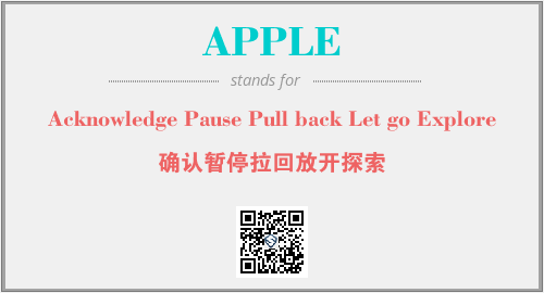 以上为Acknowledge Pause Pull back Let go Explore英文缩略词APPLE的中文解释,以及该英文缩写在英语的流行度、分类和应用领域方面的信息。