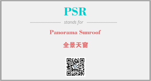 英文缩略词“PSR”经常作为“Panorama Sunroof”的英文缩写来使用,中文表示:“全景天窗”。本文将详细介绍英文缩写词PSR所代表英文单词,其对应的中文拼音、详细解释以及在英语中的流行度。此外,还有关于缩略词PSR的分类、应用领域及相关应用示例等。
