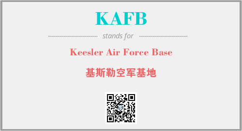 上述内容是“Keesler Air Force Base”作为“KAFB”的缩写,解释为“基斯勒空军基地”时的信息,以及英文缩略词KAFB所代表的英文单词,其对应的中文拼音、详细解释以及在英文中的流行度和相关分类、应用领域及应用示例等。