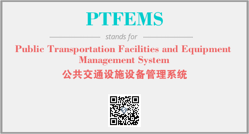 上述内容是“Public Transportation Facilities and Equipment Management System”作为“PTFEMS”的缩写,解释为“公共交通设施设备管理系统”时的信息,以及英文缩略词PTFEMS所代表的英文单词,其对应的中文拼音、详细解释以及在英文中的流行度和相关分类、应用领域及应用示例等。