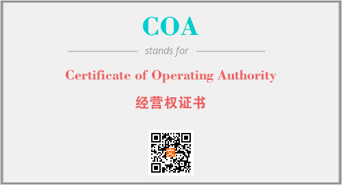 英文缩略词“COA”经常作为“Certificate of Operating Authority”的英文缩写来使用,中文表示:“经营权证书”。本文将详细介绍英文缩写词COA所代表英文单词,其对应的中文拼音、详细解释以及在英语中的流行度。此外,还有关于缩略词COA的分类、应用领域及相关应用示例等。