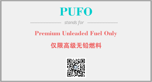 上述内容是“Premium Unleaded Fuel Only”作为“PUFO”的缩写,解释为“仅限高级无铅燃料”时的信息,以及英文缩略词PUFO所代表的英文单词,其对应的中文拼音、详细解释以及在英文中的流行度和相关分类、应用领域及应用示例等。