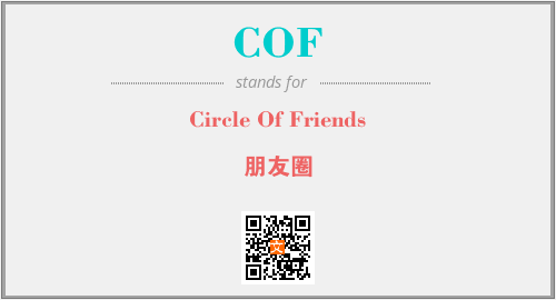 上述内容是“Circle Of Friends”作为“COF”的缩写,解释为“朋友圈”时的信息,以及英文缩略词COF所代表的英文单词,其对应的中文拼音、详细解释以及在英文中的流行度和相关分类、应用领域及应用示例等。