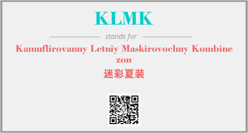 以上为Kamuflirovanny Letniy Maskirovochny Kombinezon英文缩略词KLMK的中文解释,以及该英文缩写在英语的流行度、分类和应用领域方面的信息。