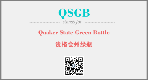 上述内容是“Quaker State Green Bottle”作为“QSGB”的缩写,解释为“贵格会州绿瓶”时的信息,以及英文缩略词QSGB所代表的英文单词,其对应的中文拼音、详细解释以及在英文中的流行度和相关分类、应用领域及应用示例等。