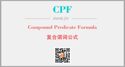 上述内容是“Compound Predicate Formula”作为“CPF”的缩写,解释为“复合谓词公式”时的信息,以及英文缩略词CPF所代表的英文单词,其对应的中文拼音、详细解释以及在英文中的流行度和相关分类、应用领域及应用示例等。