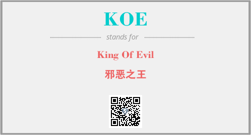 上述内容是“King Of Evil”作为“KOE”的缩写,解释为“邪恶之王”时的信息,以及英文缩略词KOE所代表的英文单词,其对应的中文拼音、详细解释以及在英文中的流行度和相关分类、应用领域及应用示例等。