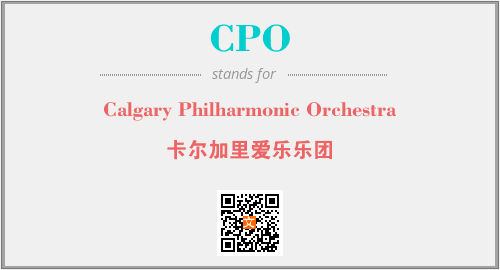 英文缩略词“CPO”经常作为“Calgary Philharmonic Orchestra”的英文缩写来使用,中文表示:“卡尔加里爱乐乐团”。本文将详细介绍英文缩写词CPO所代表英文单词,其对应的中文拼音、详细解释以及在英语中的流行度。此外,还有关于缩略词CPO的分类、应用领域及相关应用示例等。