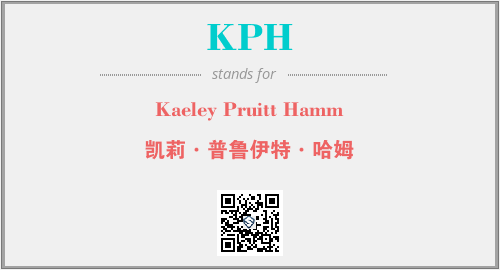 上述内容是“Kaeley Pruitt Hamm”作为“KPH”的缩写,解释为“凯莉·普鲁伊特·哈姆”时的信息,以及英文缩略词KPH所代表的英文单词,其对应的中文拼音、详细解释以及在英文中的流行度和相关分类、应用领域及应用示例等。