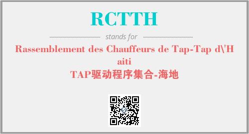 上述内容是“Rassemblement des Chauffeurs de Tap-Tap d\'Haiti”作为“RCTTH”的缩写,解释为“TAP驱动程序集合-海地”时的信息,以及英文缩略词RCTTH所代表的英文单词,其对应的中文拼音、详细解释以及在英文中的流行度和相关分类、应用领域及应用示例等。