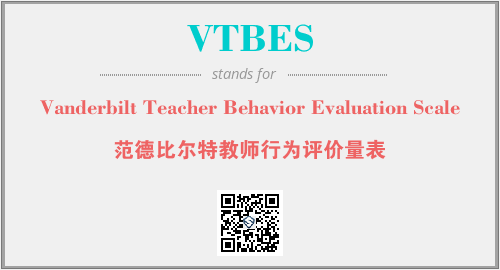 上述内容是“Vanderbilt Teacher Behavior Evaluation Scale”作为“VTBES”的缩写,解释为“范德比尔特教师行为评价量表”时的信息,以及英文缩略词VTBES所代表的英文单词,其对应的中文拼音、详细解释以及在英文中的流行度和相关分类、应用领域及应用示例等。