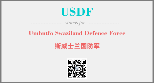 上述内容是“Umbutfo Swaziland Defence Force”作为“USDF”的缩写,解释为“斯威士兰国防军”时的信息,以及英文缩略词USDF所代表的英文单词,其对应的中文拼音、详细解释以及在英文中的流行度和相关分类、应用领域及应用示例等。