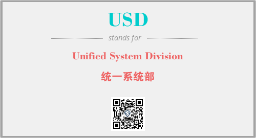 英文缩略词“USD”经常作为“Unified System Division”的英文缩写来使用,中文表示:“统一系统部”。本文将详细介绍英文缩写词USD所代表英文单词,其对应的中文拼音、详细解释以及在英语中的流行度。此外,还有关于缩略词USD的分类、应用领域及相关应用示例等。