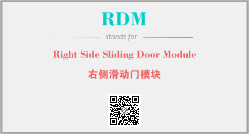 英文缩略词“RDM”经常作为“Right Side Sliding Door Module”的英文缩写来使用,中文表示:“右侧滑动门模块”。本文将详细介绍英文缩写词RDM所代表英文单词,其对应的中文拼音、详细解释以及在英语中的流行度。此外,还有关于缩略词RDM的分类、应用领域及相关应用示例等。