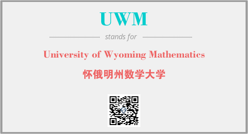 英文缩略词“UWM”经常作为“University of Wyoming Mathematics”的英文缩写来使用,中文表示:“怀俄明州数学大学”。本文将详细介绍英文缩写词UWM所代表英文单词,其对应的中文拼音、详细解释以及在英语中的流行度。此外,还有关于缩略词UWM的分类、应用领域及相关应用示例等。