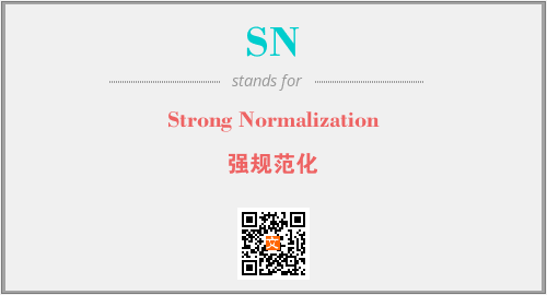英文缩略词“SN”经常作为“Strong Normalization”的英文缩写来使用,中文表示:“强规范化”。本文将详细介绍英文缩写词SN所代表英文单词,其对应的中文拼音、详细解释以及在英语中的流行度。此外,还有关于缩略词SN的分类、应用领域及相关应用示例等。