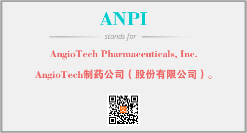 上述内容是“AngioTech Pharmaceuticals, Inc.”作为“ANPI”的缩写,解释为“AngioTech制药公司(股份有限公司)。”时的信息,以及英文缩略词ANPI所代表的英文单词,其对应的中文拼音、详细解释以及在英文中的流行度和相关分类、应用领域及应用示例等。