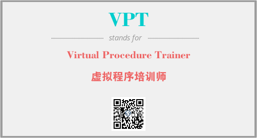 英文缩略词“VPT”经常作为“Virtual Procedure Trainer”的英文缩写来使用,中文表示:“虚拟程序培训师”。本文将详细介绍英文缩写词VPT所代表英文单词,其对应的中文拼音、详细解释以及在英语中的流行度。此外,还有关于缩略词VPT的分类、应用领域及相关应用示例等。