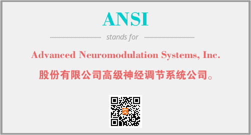 上述内容是“Advanced Neuromodulation Systems, Inc.”作为“ANSI”的缩写,解释为“股份有限公司高级神经调节系统公司。”时的信息,以及英文缩略词ANSI所代表的英文单词,其对应的中文拼音、详细解释以及在英文中的流行度和相关分类、应用领域及应用示例等。