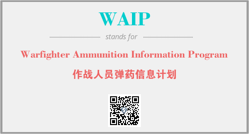 上述内容是“Warfighter Ammunition Information Program”作为“WAIP”的缩写,解释为“作战人员弹药信息计划”时的信息,以及英文缩略词WAIP所代表的英文单词,其对应的中文拼音、详细解释以及在英文中的流行度和相关分类、应用领域及应用示例等。