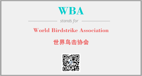 上述内容是“World Birdstrike Association”作为“WBA”的缩写,解释为“世界鸟击协会”时的信息,以及英文缩略词WBA所代表的英文单词,其对应的中文拼音、详细解释以及在英文中的流行度和相关分类、应用领域及应用示例等。
