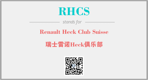 英文缩略词“RHCS”经常作为“Renault Heck Club Suisse”的英文缩写来使用,中文表示:“瑞士雷诺Heck俱乐部”。本文将详细介绍英文缩写词RHCS所代表英文单词,其对应的中文拼音、详细解释以及在英语中的流行度。此外,还有关于缩略词RHCS的分类、应用领域及相关应用示例等。